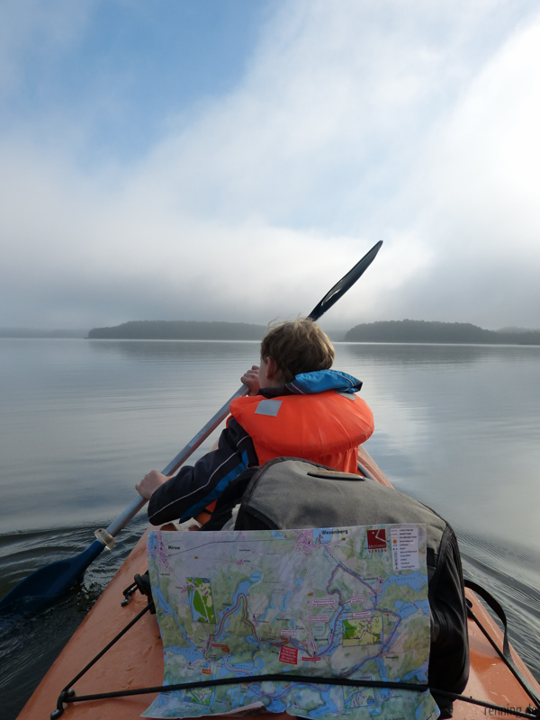 Ziel war der 1000 Seen-Marathon mit Aufenthalt auf dem Campingplatz C24. Der kleine und sehr naturnahe Zeltplatz liegt ziemlich versteckt am Ufer des Labussees. Wie im letzten Jahr war es wieder ziemlich voll und ich bin mir ebenfalls ziemlich sicher, genau zwischen den gleichen Leuten mein Zelt aufgeschlagen zu haben. Wir hatten uns für die Teilnahme am Halbmarathon im Zweierkajak entschieden und Start war am Sonnabend um 9.00 Uhr. Die erste Nacht war schon ziemlich kalt und umso schöner war der Tag, kein Regen und erst leichter Nebel und später strahlende Sonne.